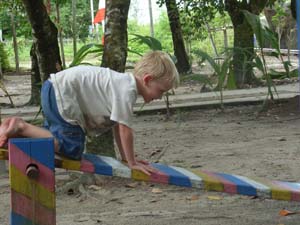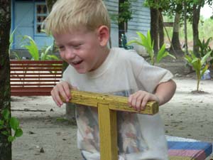 In Kumai zijn we ook nog een keer naar een soort speeltuin geweest. Toen we er kwamen s morgens was alles gesloten, je kon er in draaimolens met auto’s en vliegtuigen en gelukkig waren er ook schommels en wippen. Ik ontdek daar tegenwoordig nieuwe spelletjes mee.