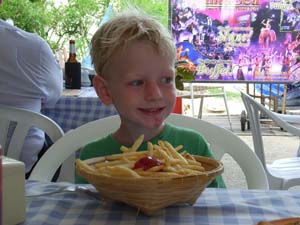Tja en nu zijn we in Thailand en mijn mam gaat heel veel op de scooter naar de tandarts, maar soms kan ik ook mee en doe ik even een mooie helm op. We gaan ook lekker naar het strand en dan is het heerlijk om daarna lekker patatjes te eten. Van de week heb ik zelfs drie Nederlandse vriendjes gehad, maar helaas zijn die alweer weg. Ze hebben een hele mooie grote boot ,maar ze hadden nog niet zoveel speelgoed dus ik vond het heerlijk om op hun boot te zijn en zijvonden het heerlijk om met mijn speelgoed te spelen. Gaaf he?
