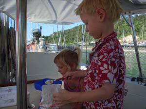 In Indonesië vond ik ook niet zo veel vriendjes, maar het was wel weer erg fijn om samen bij de boot te kunnen zwemmen. Dat was een tijd geleden omdat in Australie krokodillen zaten, kon zwemmen niet.